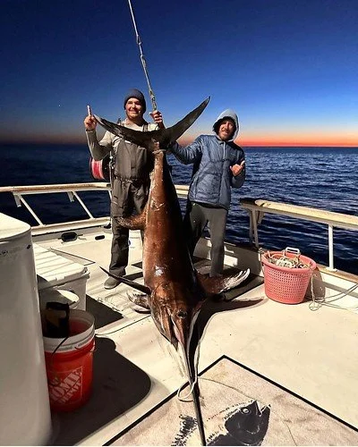 The stocks are very healthy and our fishermen follow strict protocols, which means that this is the freshest swordfish you've ever had (caught on a short offshore boat trip as opposed to 30 days in deep water with horrible gear), and it's creating a sustainable swordfish fishery off the California coast. The ultimate goal is to transition out of the egregious drift nets and longlines and adopt this hook and line buoy fishing alternative. Let's encourage these guys!