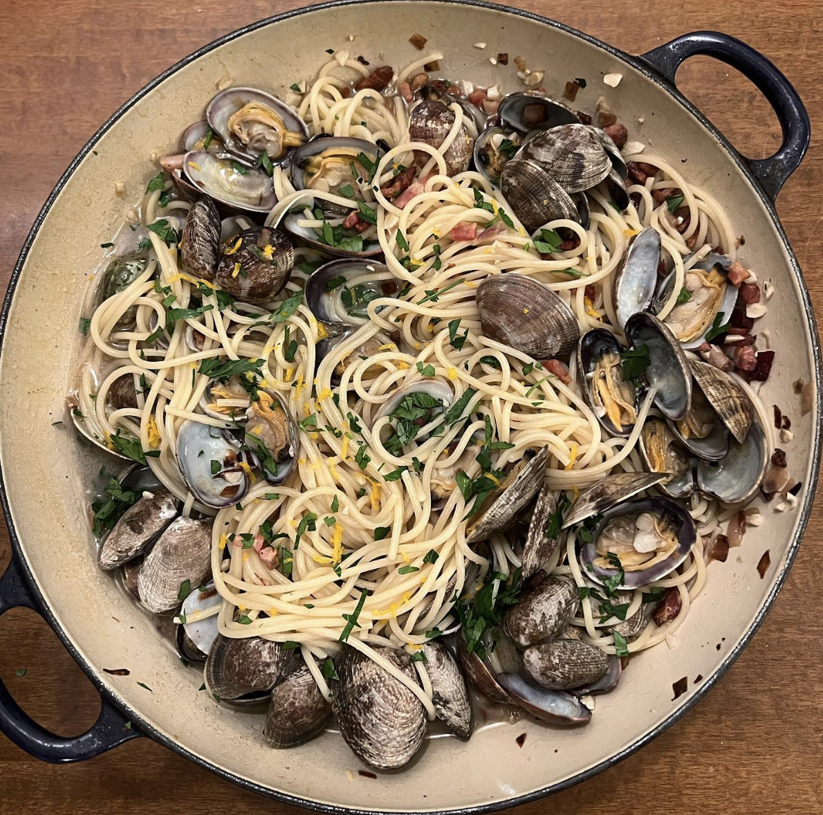 Spaghetti and clams is a classic for a reason. Simple, fresh ingredients and an easy recipe make for a fabulous weeknight dinner - huzzah! Let's toast.